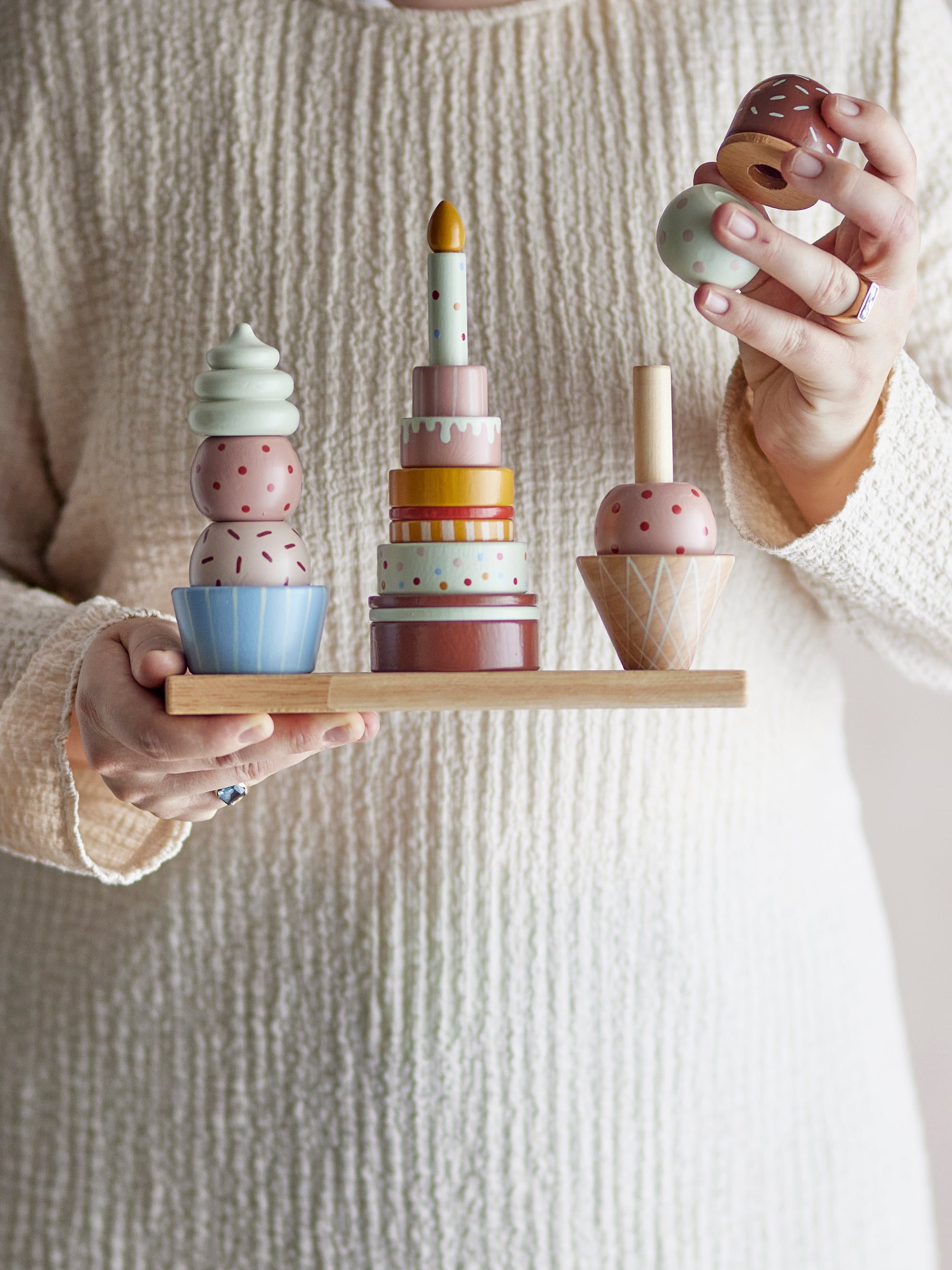 De Celebrate Activity Toy van Bloomingville MINI is een vrolijke stapeltoren in de vorm van kleine verjaardagstaartjes en ijsjes. Kinderen kunnen er heerlijk mee spelen, terwijl het kleurrijke en speelse ontwerp tegelijkertijd een leuke decoratie vormt in de kinderkamer. Een charmant speeltje dat bij iedereen een glimlach oproept.