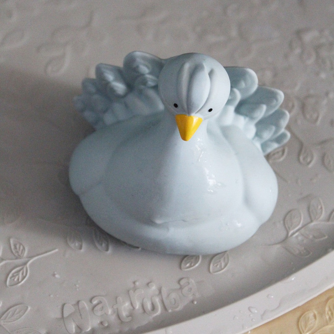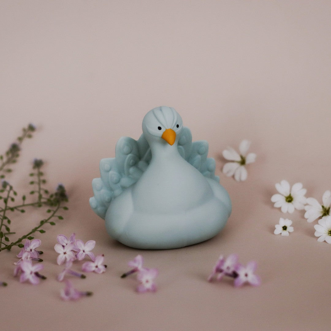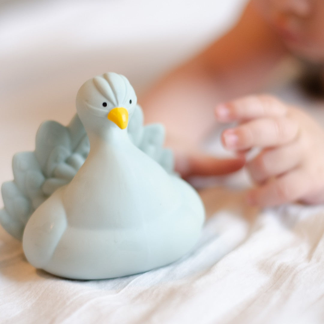 Deze prachtige pauw steelt meteen de show in bad. Het zachte natuurrubber is heerlijk om op te kauwen bij doorkomende tandjes en zorgt daarnaast voor eindeloos speelplezier in bad. Het ontwerp ligt prettig in kleine handjes waardoor jouw kleintje het makkelijk kan vasthouden en ontdekken.