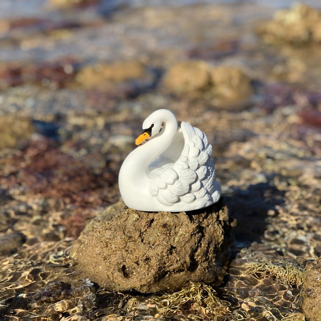 Het ontwerp is geïnspireerd op de sierlijke zwanen uit Denemarken: een symbool van zachtheid en schoonheid. Elk exemplaar wordt met de hand gemaakt van natuurlijk rubber uit duurzame bossen in Sri Lanka, zorgvuldig gevormd en met de hand beschilderd met kleurstoffen van voedingskwaliteit.