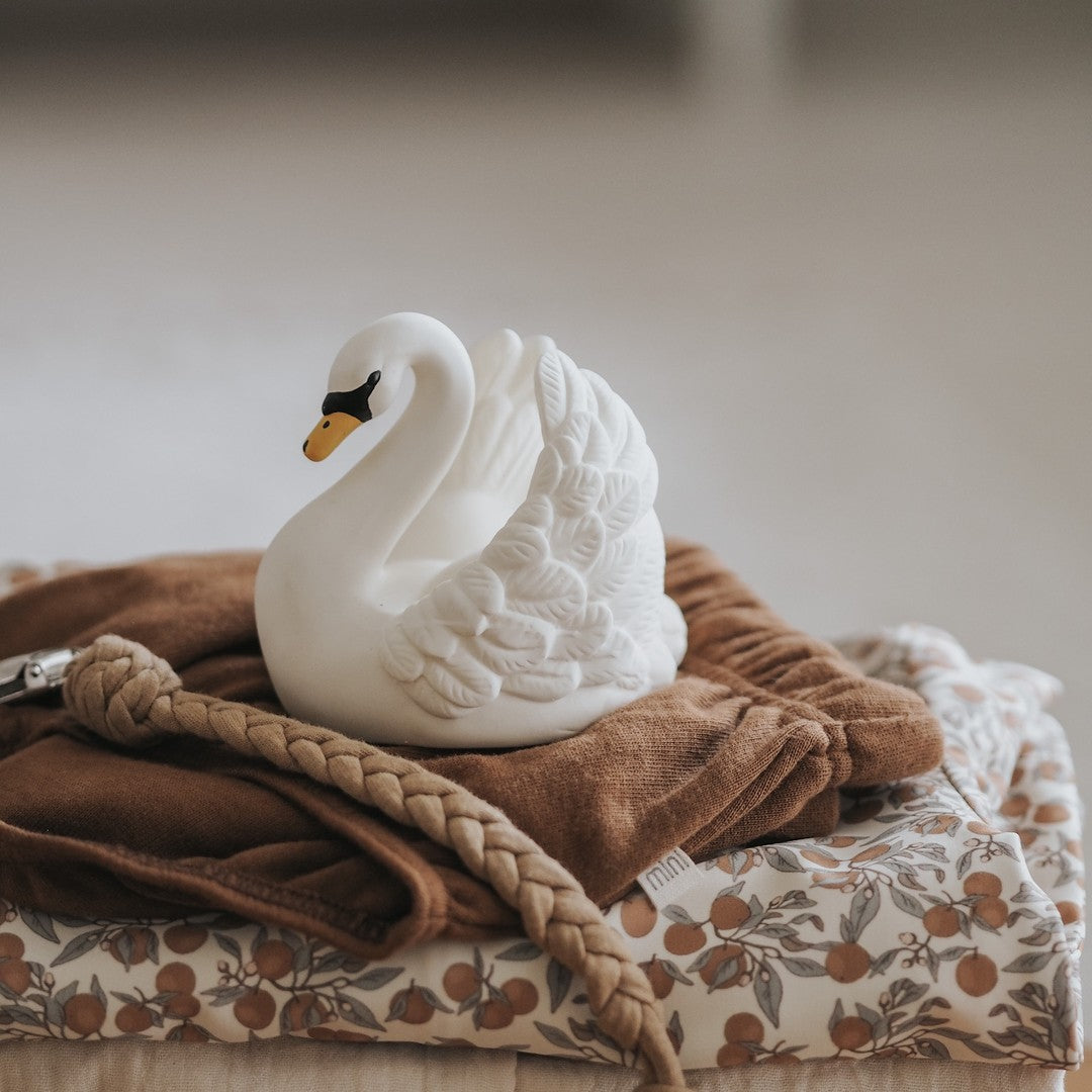 Laat je kleintje kennismaken met de magie van Natruba met deze elegante zwaan. Perfect als badspeeltje én als bijtspeelgoed bij doorkomende tandjes.