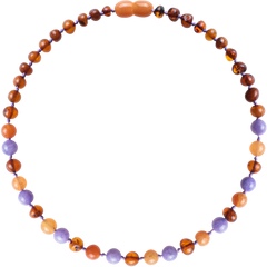 Barnsteen armband voor baby/peuter in cognac, aventurine en paarse jade.