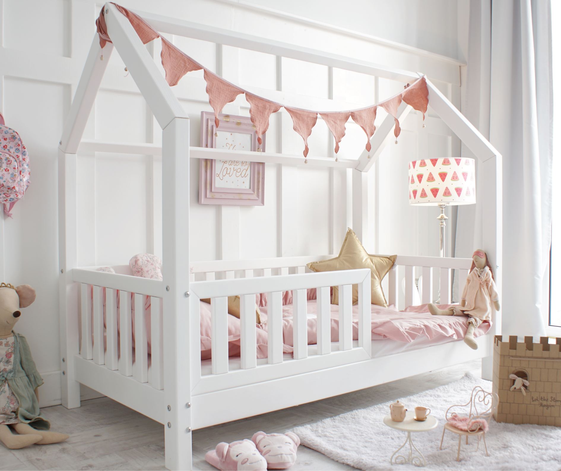 Een bedhuisje is niet alleen een bed, maar ook een speelse plek om te dromen, spelen en ontspannen in de kinderkamer. Je kunt er ook bijvoorbeeld een leuke lichtslinger in hangen.