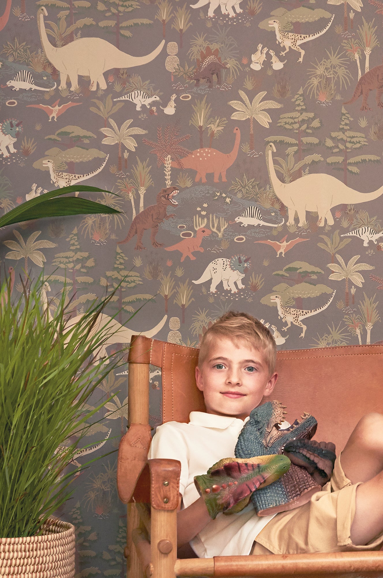Majvillan Behang - Dinosaur Vibes - Evening Grey