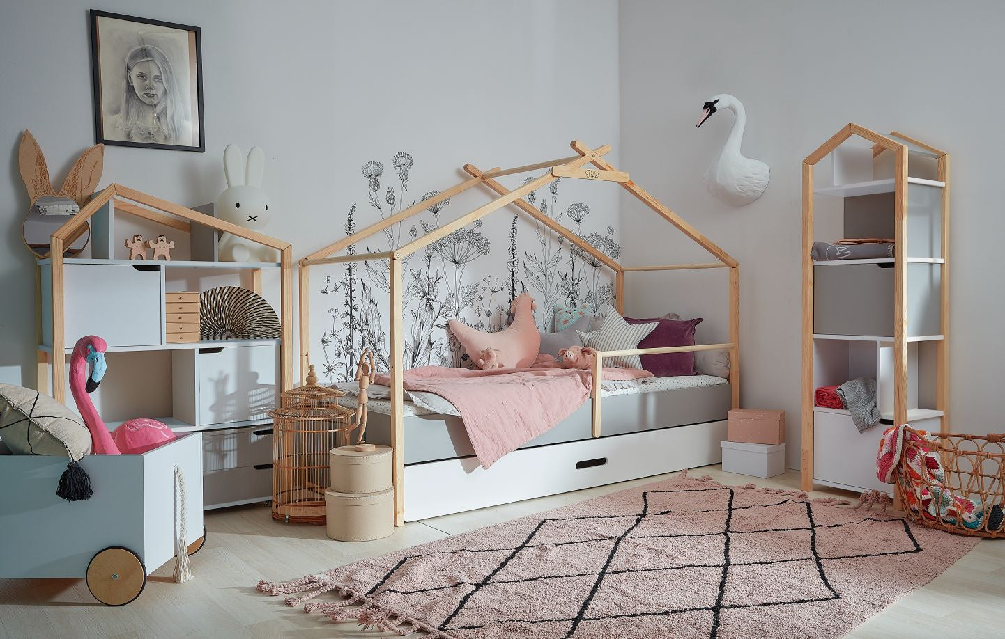 Deze hoge en ruime kast in de vorm van een huis, voorzien van planken, opbergvakken en lades in verschillende formaten, biedt elke jonge ontdekkingsreiziger de ruimte om creatief te spelen en helpt bij het organiseren van speelgoed.