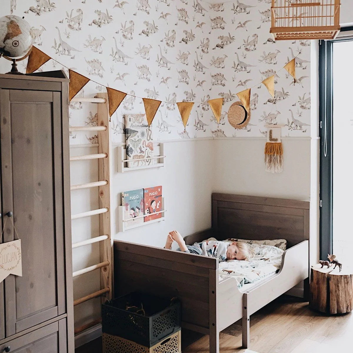 Kies voor zachte, neutrale tinten zoals beige, zand, grijs of pastelkleuren. Deze kleuren groeien mee met je kind en passen bij verschillende interieurstijlen. Tijdloze prints zoals sterren, strepen, stippen, subtiele bloemen of rustige natuurmotieven blijven jarenlang mooi en combineren makkelijk met nieuwe meubels en accessoires. Zo hoef je de kamer niet telkens opnieuw te behangen en blijft de kinderkamer stijlvol én praktisch.