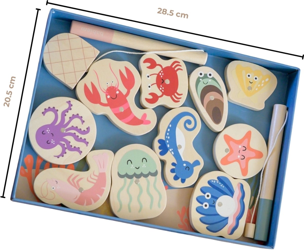 Inhoud: Inclusief houten zeedieren en 2 magnetische hengels