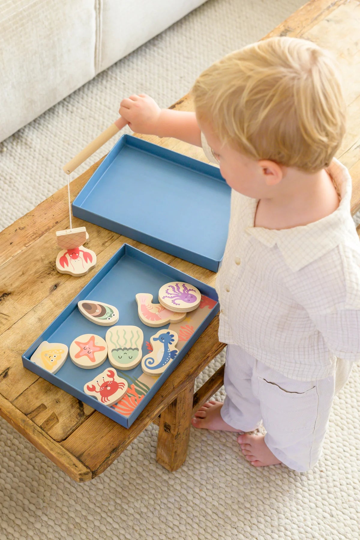 Laat je kleintje spelenderwijs de onderwaterwereld ontdekken met dit magnetische visspel. Met een vrolijke hengel proberen kinderen de houten zeedieren te vangen, soms lukt het meteen, soms vraagt het wat extra precisie… en dat maakt het juist zo leuk!