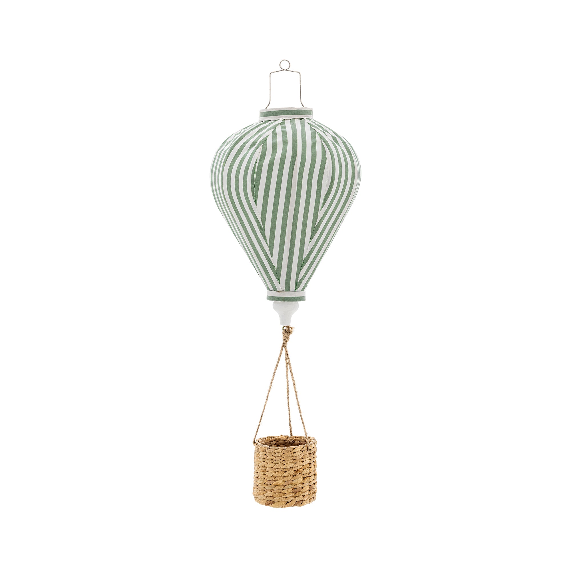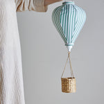 De Pomp Mobile van Bloomingville MINI is een charmante luchtballon die perfect is als decoratie in de kinderkamer. Je kunt er een klein lampje op batterijen in plaatsen, zodat de mobile ook als zacht nachtlampje kan dienen. De ballon heeft fijne strepen in groenachtige tinten en een mandje van rotan. Een sfeervol accessoire dat een gezellige uitstraling geeft aan iedere kinderkamer.