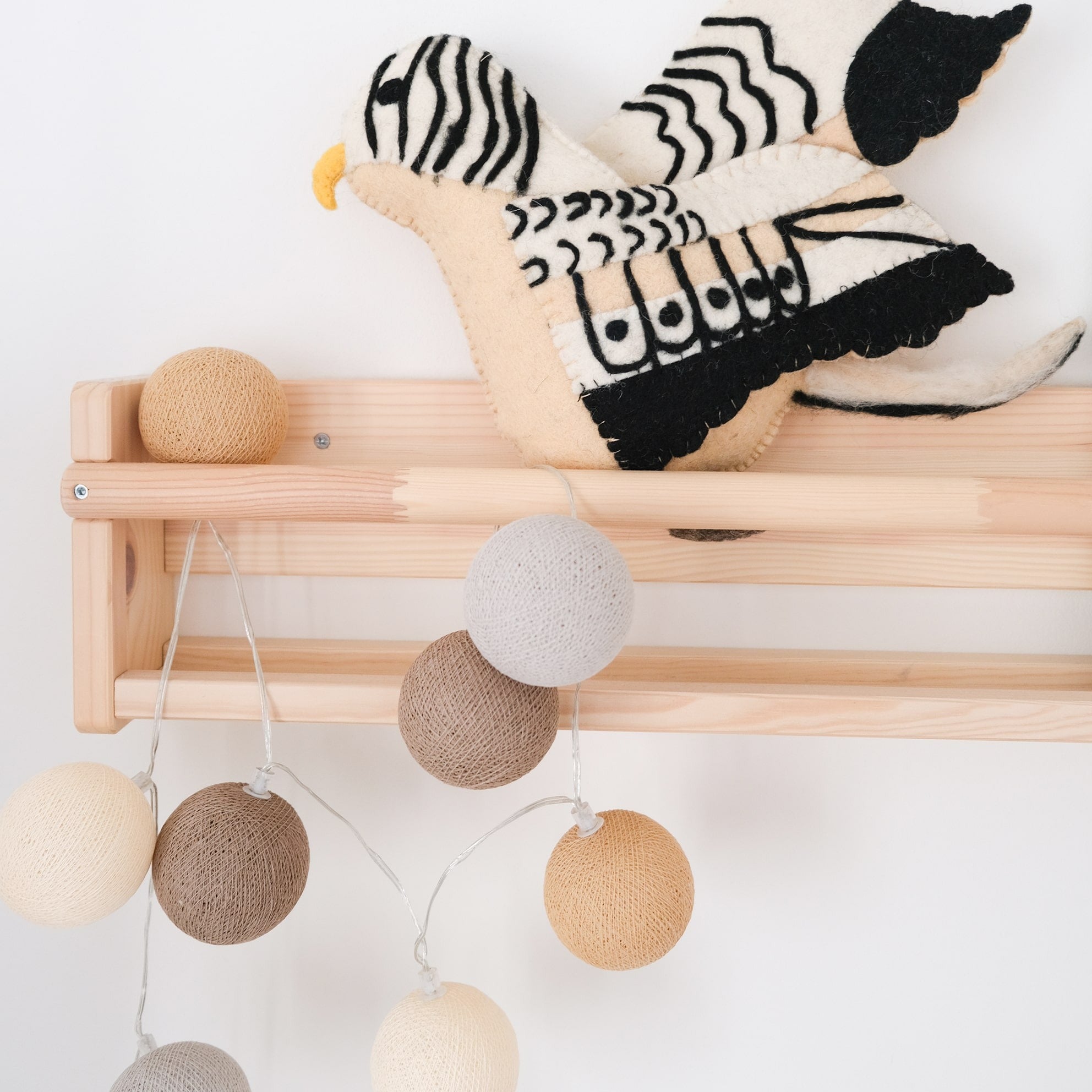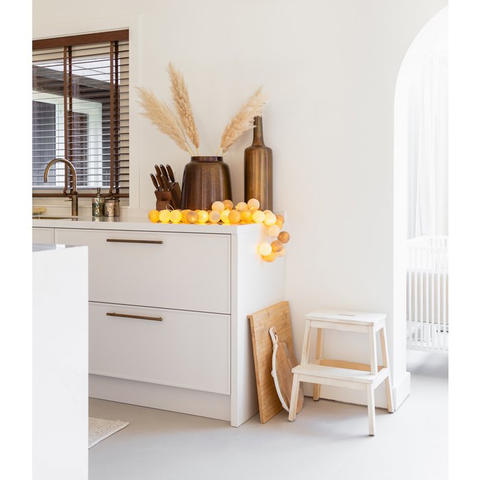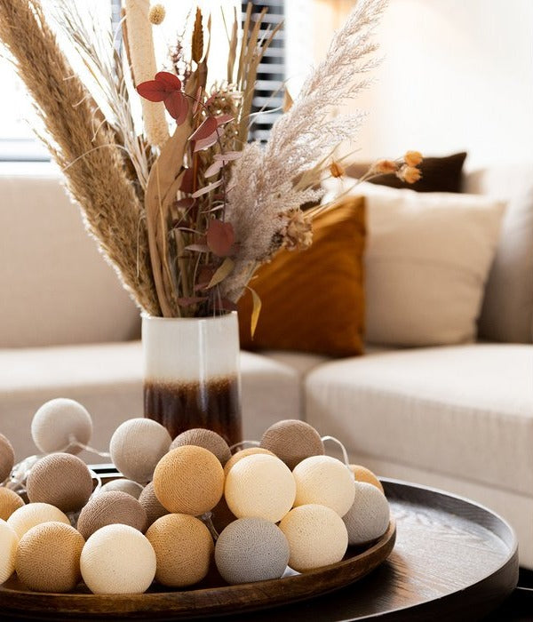 Lichtslinger met prachtige katoenen balletjes. De kleur Teddy is een warme mix van bruin en beige en is een sfeervolle toevoeging in een naturel interieur!