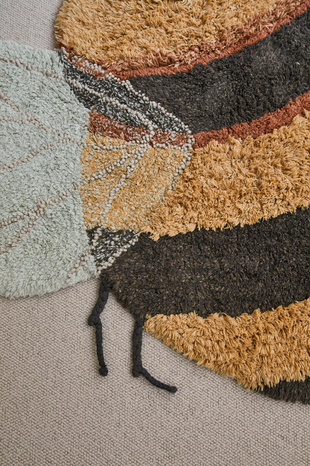 Wasbaar Vloerkleed Bee van het Spaanse merk Lorena Canals verandert de de kinderkamer in een wereld van spelen en leren.