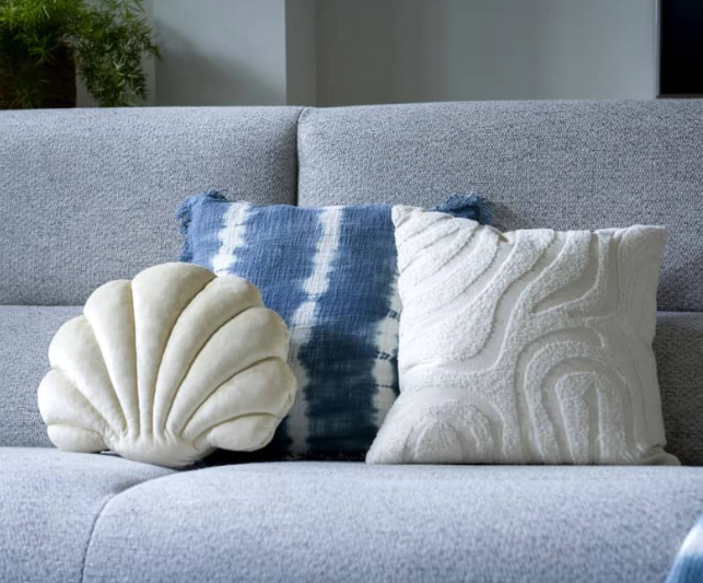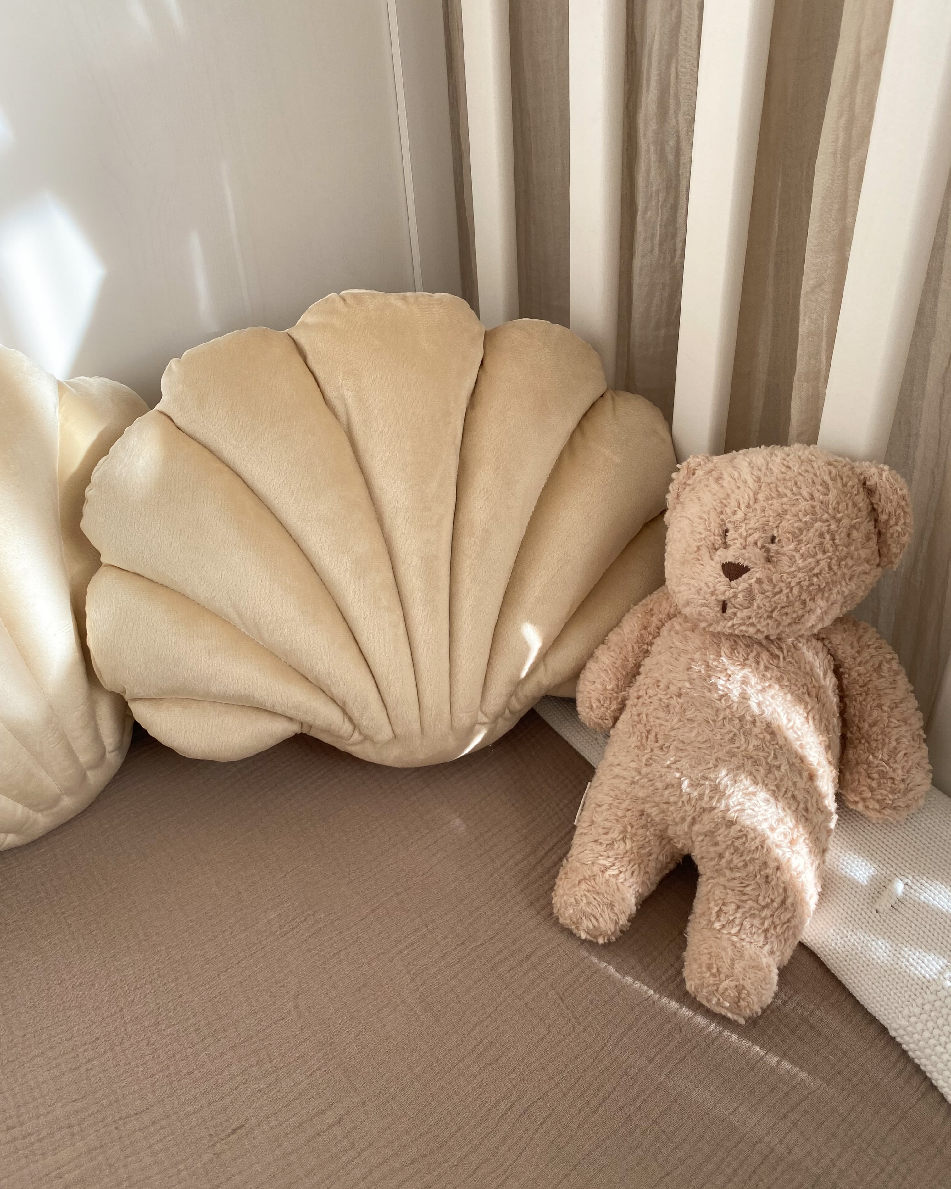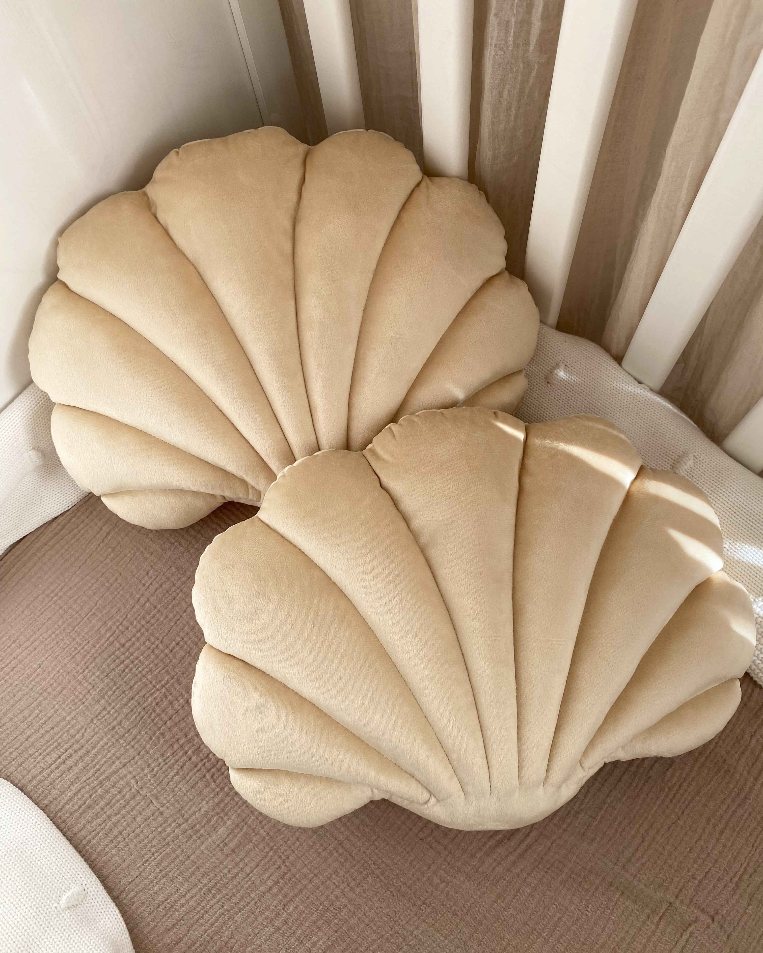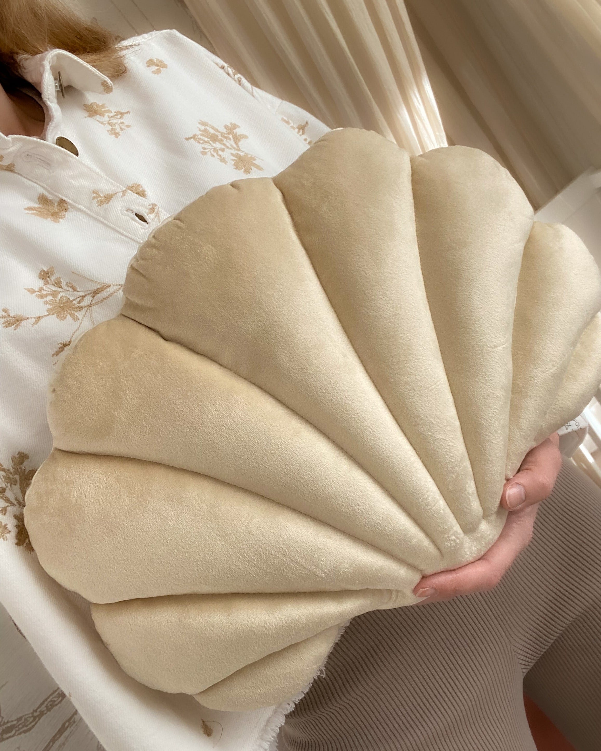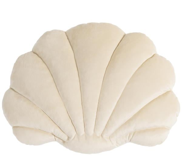 Sierkussen in de vorm van een schelp van zacht fluweel. Dit kussen van Coco Maison heeft een mooie crèmekleur en heeft een afmeting van 28 x 38 cm. De binnenvulling is niet uitneembaar.