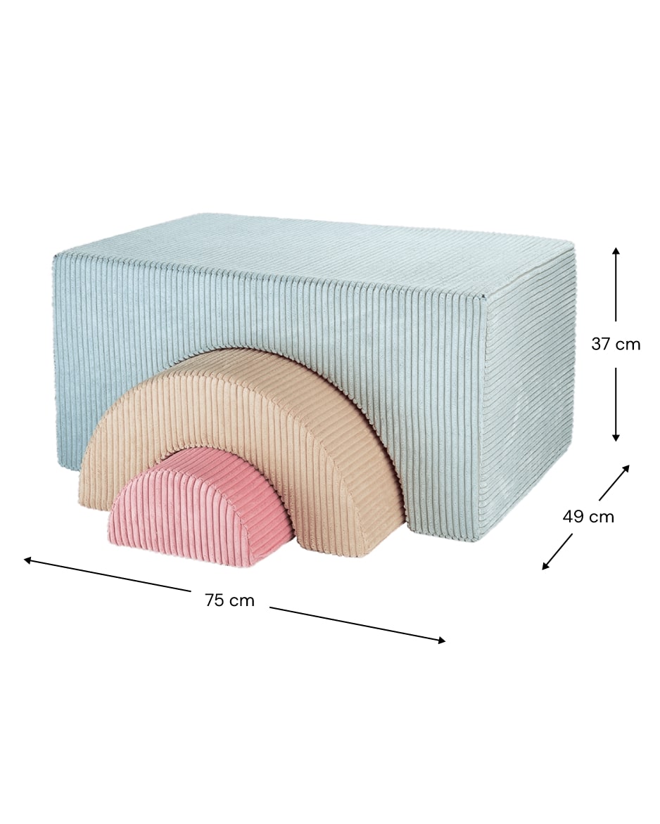 De Wigiwama Rainbow Playset bestaat uit drie onderdelen met verschillende vormen die samen of los van elkaar gebruikt kunnen worden. Deze stijlvolle speelset past in elke kinder- of woonkamer.