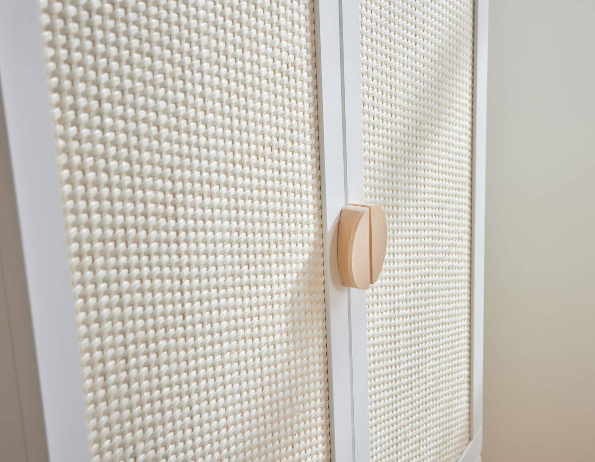 Ravena is een collectie met licht, modern meubilair. Een subtiele combinatie van houten, gebogen vormen en de exotische, opengewerkte textuur van rotan. Creëer een kinderkamer met een unieke uitstraling met deze ruime 2 deurs kledingkast van hoge kwaliteit. Van deze kamerinrichting kunnen kinderen jarenlang plezier hebben!