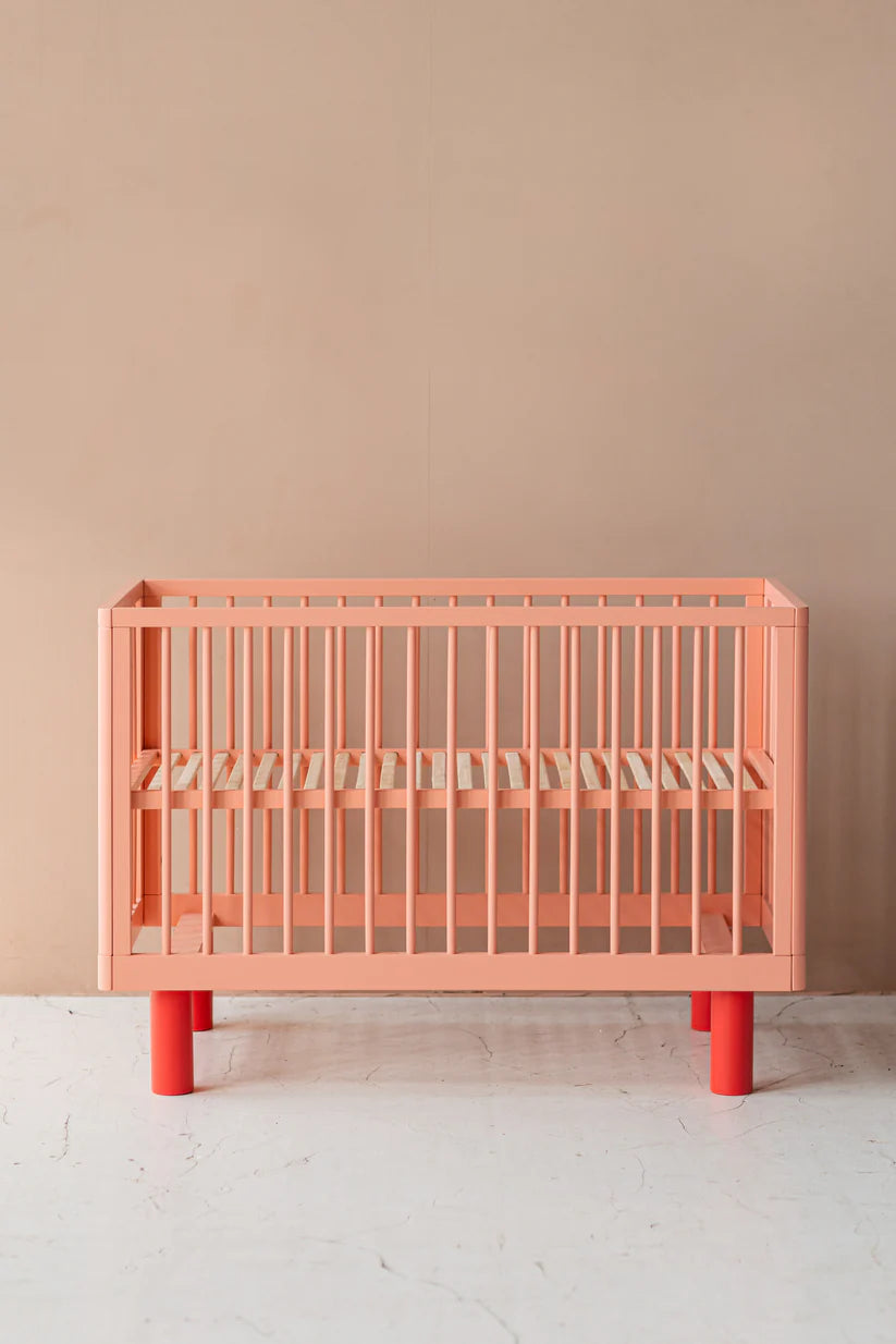 KARL & FRIC Ledikant Nox - Roze met rode poten - 60x120cm