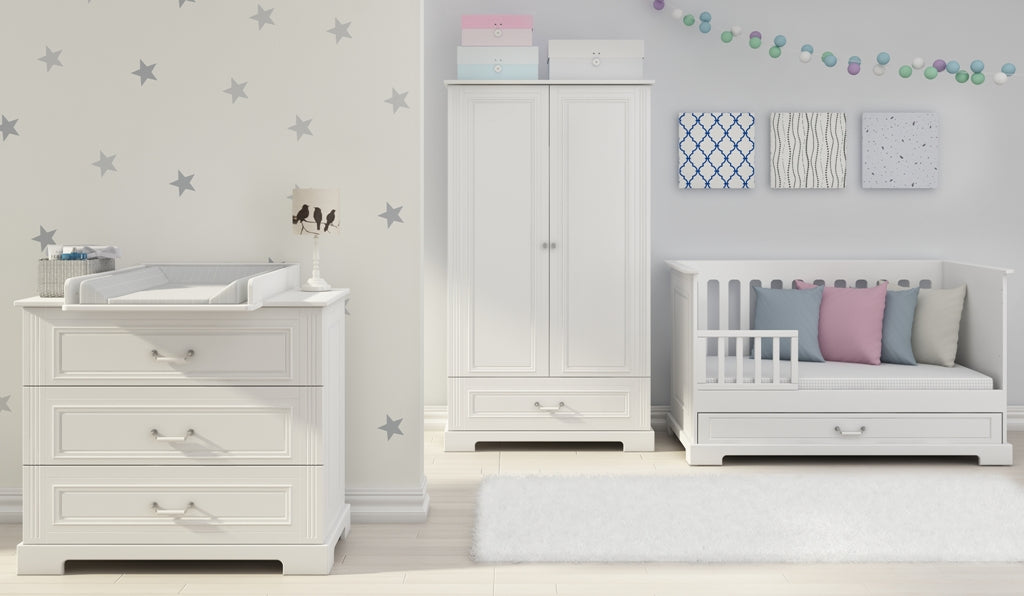 Het ledikant groeit mee - verwijder de voorste frame en verander het ledikant in een bed of bankje.