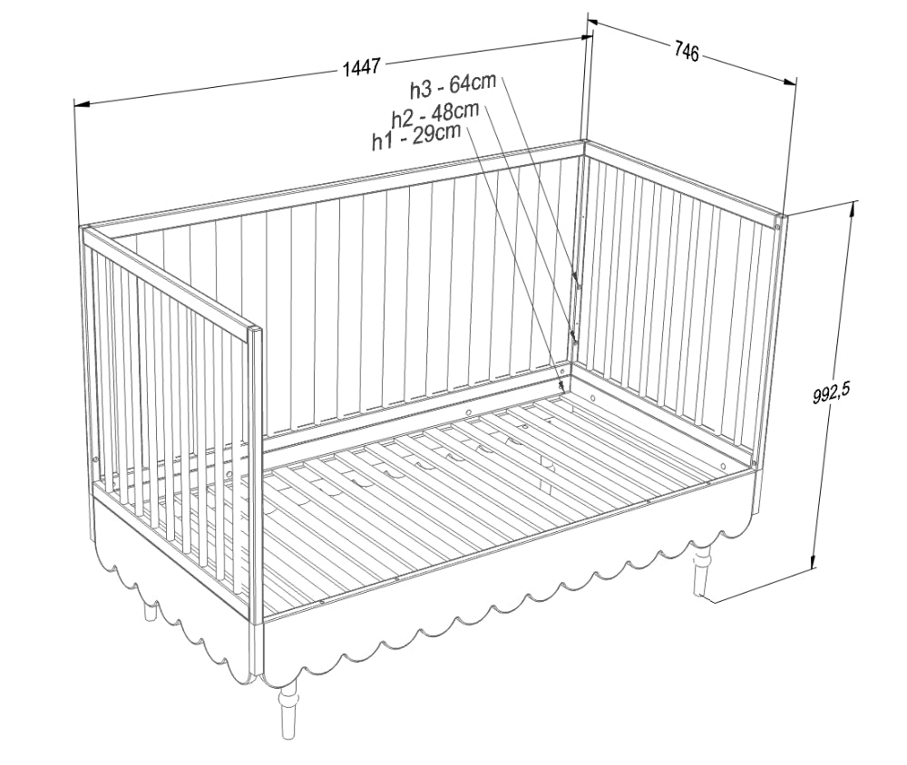 Ledikant Babushka is een mooi ledikant in retrostijl, met een geschulpte rand en sierlijke poten. Het ledikant heeft een iets grotere maat: 70x140cm en kan als je kindje ouder is worden omgebouwd tot een junior bed.