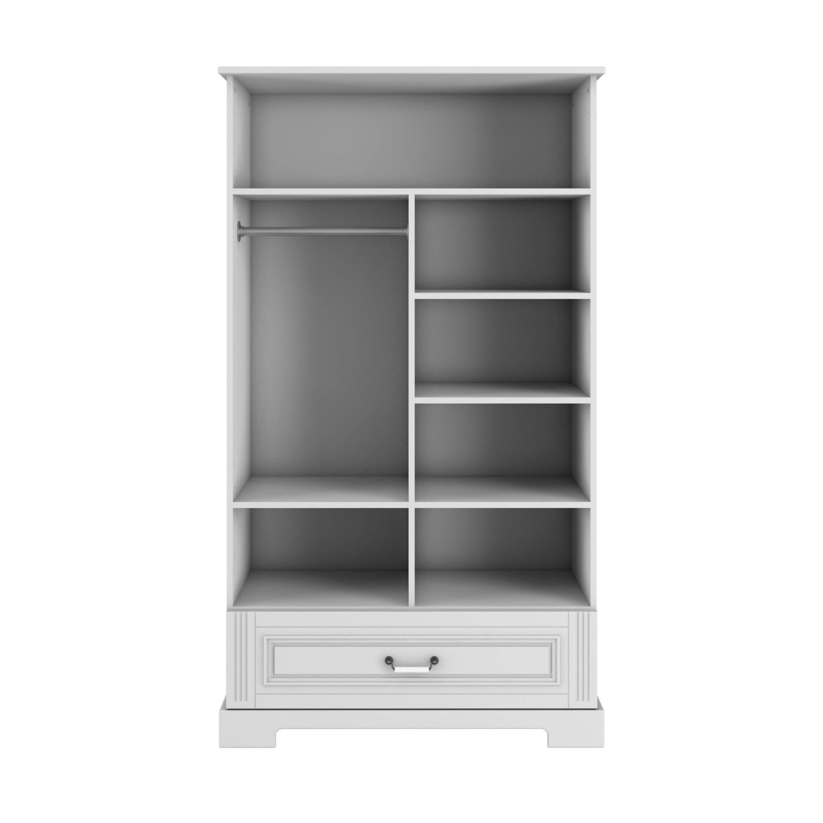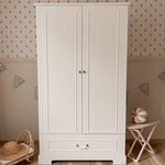 Een ruime en praktische kledingkast die in elke kamer goed tot zijn recht komt. Het tijdloze ontwerp met verfijnde details past moeiteloos in zowel kinderkamers als andere ruimtes in huis. Dankzij de slimme indeling creëer je eenvoudig overzicht en blijft alle kleding netjes opgeruimd.
