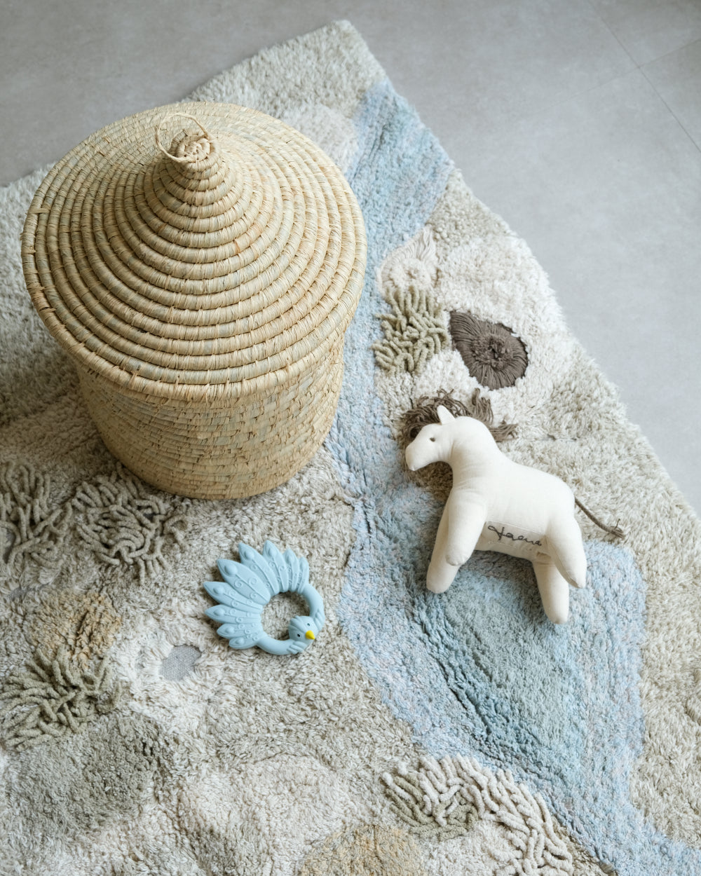 Onze opbergmanden zijn verkrijgbaar in diverse stijlen: van minimalistisch Scandinavisch tot boho met vlechtwerk en zachte pasteltinten. Kijk bij elk product naar de kleur- en materiaalomschrijving om een mand te kiezen die mooi aansluit bij de sfeer van jouw kinderkamer of woonkamer.