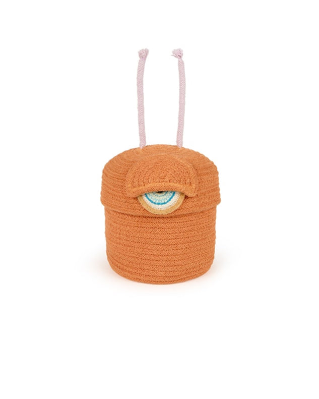 Beep boop beep! Neem me mee naar de ruimte, aardse vrienden! Ik ben aliën Ploot opbergmand! Handgemaakt met gevlochten katoenen koorden in levendig oranje. Met mijn twee stoffen antennes op mijn deksel vang ik buitenaardse signalen op, en met mijn magische oog kijk ik voorbij de sterren! Mijn speelse en unieke vorm geeft elke kamer een kosmische touch, perfect voor kleine galactische ontdekkingsreizigers!