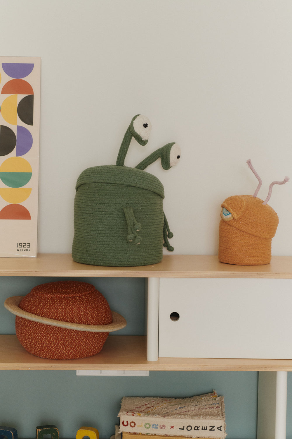 Met de hand gemaakt van gerecyclede PET-vezels en milieuvriendelijk katoenen touw, ben ik gebouwd om de melkweg te veroveren! Mijn grote, speelse ogen – pluizige witte pompons met een klein zwart middelpunt – spotten elke UFO die voorbij suist. En die koorden aan mijn zijkant? Perfect om andere aliëns een high-five te geven!