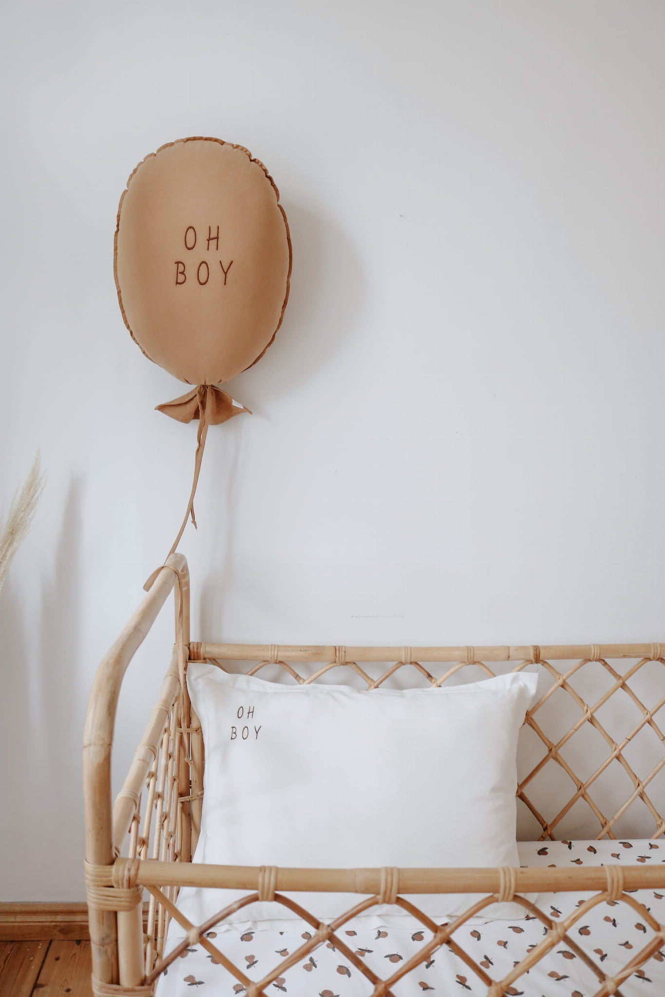 Het kussen in de vorm van een ballon is gemaakt van heerlijk zacht gewassen katoen, met een stevige siliconen vulling. Deze ballon is te personaliseren met een eigen tekst.