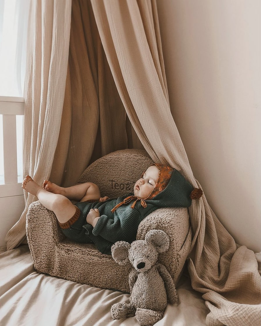Deze teddy stoel met naam in het beige is een gepersonaliseerd, zacht stoeltje dat perfect staat in de woonkamer of in de kamer van jouw kindje. Zacht en comfortabel zitje voor kinderen vanaf 9 maanden.