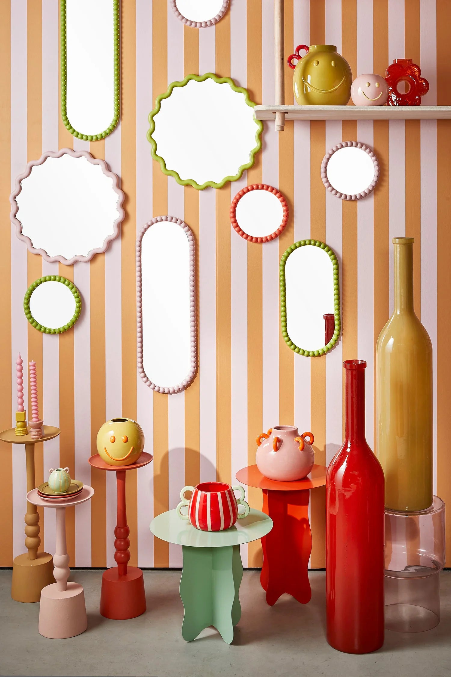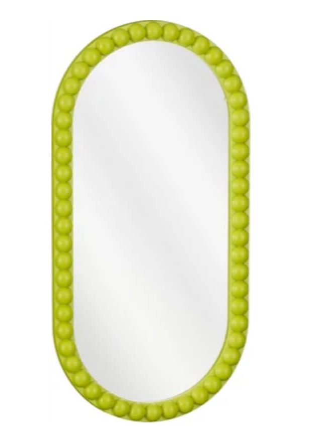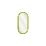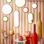 Breng een speels en stijlvol accent in huis met deze groene wandspiegel. De zachte golvende omlijsting vormt een mooi contrast met het heldere spiegelglas en geeft een frisse, vrolijke uitstraling aan elke ruimte.