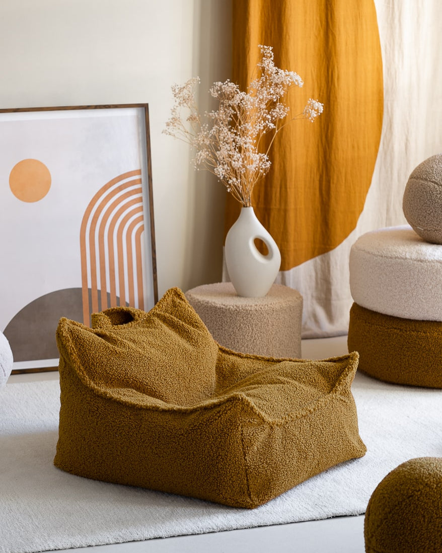 Deze zitzak voor kinderen past makkelijk in zowel moderne als klassieke interieurs, dankzij het tijdloze ontwerp en de verschillende kleuren.