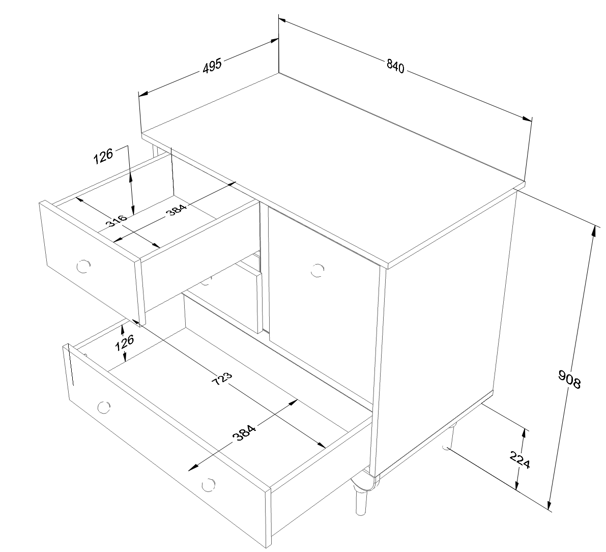 Materiaal: gelamineerde meubelplaat, mdf, beukenhout (poten) - platen geproduceerd in Europa volgens veiligheidsnorm EN71/3 betreffende kindermeubels en speelgoed.