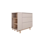 Materiaal: Deze ladekast is gemaakt van gelamineerd plaatmateriaal, MDF en massief beukenhout (poten). Alle gebruikte materialen zijn gecertificeerd en voldoen aan de EN71/3 veiligheidsnorm voor kindermeubels en speelgoed.